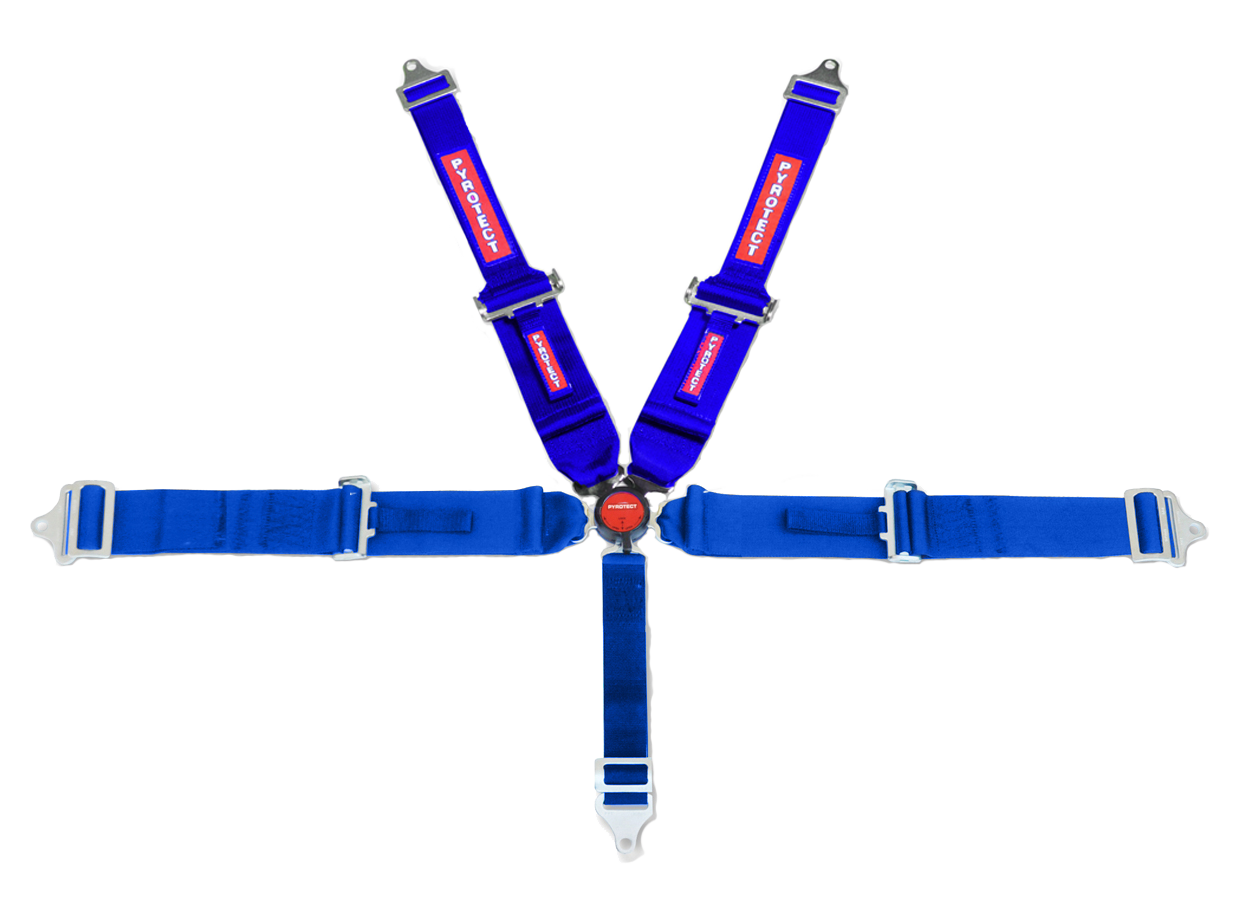 Pyrotect Racing premium European-style camlock mechanism driver restraint harness comes with 3-inch webbing standard. Optional head neck restraint-ready with 2-inch-to-3-inch wide shoulder belts webbing for easier head neck restraint use. These driver restraints are SFI 16.1 approved and include deluxe hardware, 50″ adjustable shoulder harness, optional lap belts in “pull up” or “pull down” configuration. Ideal for quick driver changes or fast “button up”. Guaranteed current month dating. Re-webbing available.
